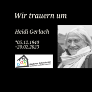 /in AktuellesWir trauern um unser aktives Asylkreis-Mitglied Heidi Gerlach, die am 20.02.2023 im Alter von 82 Jahren verstorben ist. Mehr über ihr Wirken im Asylkreis erfahren Sie hier.