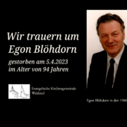 /in AktuellesAm 5. April 2023 verstarb unser langjähriger Kirchmeister Egon Blöhdorn im Alter von 94 Jahren. Egon Blöhdorn wurde im März 1972 ins Presbyterium unserer Gemeinde gewählt. Als im September 1973 erstmals ein kleiner Ausschuss von drei Personen für die Friedhofsangelegenheiten […]