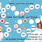 Am 25. November veranstalten wir in Amern am Kockskamp 24 einen Kinderspielenachmittag mit Keksen, Punsch und Spielen für Große und Kleine.