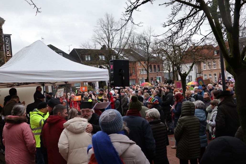 Weit über 1000 Menschen sind am Sonntag in Waldniel für unsere Demokratie auf die Straße gegangen. Sie alle zeigten Haltung gegen Hass, Faschismus und jede Form von Ausgrenzung.Bei der Kundgbung auf dem Markt kamen unterschiedliche Stimmen zu Wort. Es sprachen die Vorsitzenden der vier Parteien im Rat der Gemeinde Schwalmtal, Schülervertreter der Hauptschule und der Realschule, der Bürgermeister und unser Pfarrer Müller als Vertreter unserer Kirchengemeinde. Yildimir Öner, der Direktor der Janusz-Korcak-Realschule moderierte und der Sänger und Gitarrist Tobias Janssen gestaltete mit drei Songs den musikalischen Part.